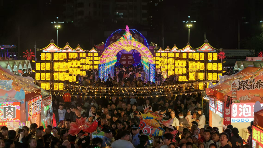 4所高校共組織了70余論理學生構成志愿辦事隊,介入了非遺展現、舞臺展演及漢服魚燈巡游環節,成為現場的亮點。